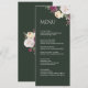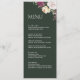 Vi presenterar Modern Peony Wedding Collections menykort, ett perfekt tillägg till din bröllopsdekoration. Detta eleganta kort har en smaragdgrön bakgrund med burgunderröda, vita och krämfärgade rosor, som ger en touch av sofistikering till ditt bröllop.
