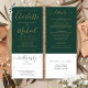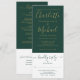 En allt-i-ett bröllopsinbjudan med modern signerad skrifttyp och elegant guldtypografi på en smaragdgrön bakgrund. Inbjudan inkluderar ett RSVP-kort som kan klippas av och detaljer om gästinformation. Designad av Thisisnotme©