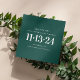 Meddela din bröllopsdatum med detta "Save the Date"-kort med en djup tealgrön (även känd som midnattsgrön) bakgrund och en elegant, ren layout. Den rika gröna färgen ger en modern touch samtidigt som designen hålls enkel och lätt att läsa. Detta kort är ett bra val för par som älskar minimalistisk bröllopsbrevpapper och vill ha något som känns polerat utan att vara alltför dekorativt. Tydlig typografi håller fokus på era namn och datum, vilket gör det idealiskt för tidiga bröllopsannonseringar. Ett förfinat och stilrent sätt att dela er datum på. Tillgängligt både som tryckt kort och digital nedladdning.