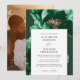 Modern smaragdgrön och guld blomfotobrollop inbjudningar
