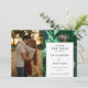 Modern smaragdgrön och guldblommig foto bröllop spara datumet