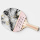 Personlig pingpongchamionpaddel med elegant och modern marmorerad mönster. Vitt, svart och rökfritt grått marmor med tunt rosett band faux-guld-snurrar över hela mönster. En ljus rosa övertoningsbakgrund under det marmorerade mönster.