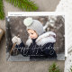 Skicka festive hälsning med det här moderna Glad helg-vykortet som innehåller ditt favoritfoto från vågrät som gränsar till ömtåliga snö-blommor. "Glad helg" visas i ett chic-vitt kalligrafiskript med familjens namn under. Baksidan innehåller ditt budskap om helgdag för returadress och anpassningsbar och skapar det ett enkelt men elegant sätt att hedra säsong.