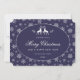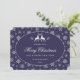 Elegant blå och vit julkort med renar och vintergrönska inuti en snöflinga ram. Ett vackert skrivstil font används för att ge ett mer festligt utseende till detta gratulationskort. Lätt personalisera detta icke-foto julkort online.