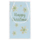 Modern Snowflake Blue Script Lycklig jul Gift Bag. Den här presentpåsen levereras med snöflingan helgdag och ett trendig-skript Lycklig jul. Du kan anpassa texten om du vill. Perfekt för helgdag till familj och vänner.