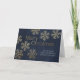 Elegantens moderna marinblått med guld-färgstryck korporera julhälsningskort med klassblå och elegant marin blå vattenfärgsbakgrund med God jul-meddelande. Med den här snyggten har du ett matat hälsningskort som ger dina kunder, medarbetare och vänner julhelgens klass och finess. Design Copyright © CustomChristmasPhotoCards.com