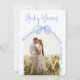 Modern Snurrig Handritad Båge BLÅ Foto Bröllop Spara Datumet