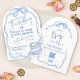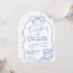Modern snygg handritad blå retro bröllopsbåge inbjudningar