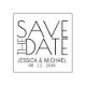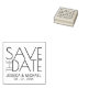 Modern Snyggt Bröllop spara datum Rubber Frimärke med texten "Save the Date" med namn och datum i det moderna teckensnittet stil.