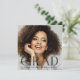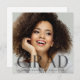 Modern och djärv, kvadratisk "Photo" studenten-meddelandekort, med inslag av mörk, genomskinlig, modern mode stil-text med texten "GRAD", med minimal typografi. Bilden från student på kortets framsida visar hela yta. Kortets baksida ger personlig textutrymmen för information om studenten och framtida resor. Perfekt för högstadiet, högskolan och universiteten grad student.