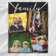 En fet och enkel filt som du kan anpassa med ett galleri med dina egna familjefotografier. Klicka på "Anpassa" så kan du överföra de foton du valt till mallen. Dessa kommer att visas i de fyra "ramarna på utformningen. Rubriken på mönstret är "familj" i snyggtens manusskrivstil.