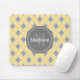 En giftig, modern, geometrisk diamant Moroccan lattice trellis mönster i gult och grått med en vit gräns kontur. Den här chic grafiken mönster har också en cirkelnamnplåt för anpassningsbarnas monogram och namn. En monogrammad elegant-gåva till kvinnor som kärlek coola designerar mönster i en snyggt färg palett.