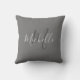 Modern snyggt mörk grått monogram namn-skript Throw PillowDu kan enkelt ändra namn och monogram för att anpassa det.