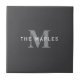 Modern Snyggt Mörk Grått Monogram och Namn Kakelplatta