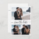 Elegant Calligraphy Script Minimalist 3-Photo Collage Bröllop spara datum Cards in Black and White. Denna noggrant utarbetade utformning är skräddarsydd för det moderna bröllop, som framhäver en fantastisk romantisk allure. Med sitt snygga 3-foto-rutnätssortering och sitt handskrivna svan-teckensnitt kapslar de här korten contemporaryns elegans. Anpassa varje kort med dina uppskattade uppgifter om bröllop och bilder och erbjuda ett finslipat och sofistikerat sätt att tillkännage och fira din fantastiska dag.