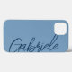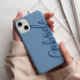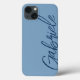 Det här iphone case har en blå bakgrund med ett modernt blått skript för snyggten. Anpassa den med ditt namn eller initialer, en modern snyggt telefonväska.