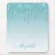 Modern Elegant Fashionable och Trendig Aqua Blue Glitter Mouse Pad personlig med ditt namn. Snyggt Script. Att köra Glitter med gnistor.