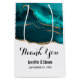 Tack (bröllop eller annan händelse) presentsäck med abstrakt stil. Illustration av tealagatsten med lagrar av varierande nyanser. Ett faux glitter-ribbon springa mellan lagrar i färg. Modern snyggt-design.