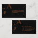 Gör ett djärvt första intryck med den här sofistikerade affärskortet. En djup svart bakgrund accentueras av överdimensionerat kopparinitialer för en slående contemporary. Framsidan visningar ditt namn och din titel i varma koppartoner, medan baksidan på presenter är din kontaktinformation. Perfekt för entreprenörer, konsulter, formgivare eller någon som söker en sjaskig professionell stil. Anpassa enkelt texten, initialer och färg till kostym till ditt märke.