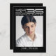 Modern högteknologisk sci-fi stil, studenten-fotoannonseringskort, med inslag av sofistikerad futuristiska typografi med texten "Klass av 2023 Student", ditt namn och namn. Kortets baksida ger personlig textutrymmen för information om studenten och framtida resor. Färger är vit och silver grått färgad-text på regalsvart eller ändrar på ett enkelt sätt bakgrunden färg som du vill. Perfekt för alla högskoleelever, högskolor, universiteten och högskolelärare i student.