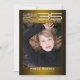 Modern högteknologisk sci-fi stil, studenten-fotoannonseringskort, med inslag av sofistikerad futuristiska typografi med texten "Klass av 2023 Student", ditt namn och namn. Kortets baksida ger personlig textutrymmen för information om studenten och framtida resor. Färger är vit och silver grått färgad-text på övertoningsskuggor av guld, koppar och brass färger eller ändrar lätt bakgrunden till färg som du vill. Perfekt för alla högskoleelever, högskolor, universiteten och högskolelärare i student.