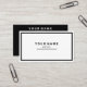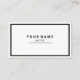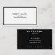 En uppsättning moderna affärskort. Designen har en vit framsida, med en fet svart gräns och en text. Det finns ett utrymme där du kan lägga till ditt namn och din befattning. affärskortens baksida är svart med vitt skrivbord. På kortets baksida finns samma utrymme för att ange ditt namn och befattning. Det finns också utrymme för att lägga till ett telefonnummer, ett e-postnummer till adress och en webbplats adress i mitten av kortet. Vid kortets grund finns det utrymme att lägga till ett adress, om det behövs.