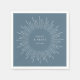 Modern ljusblå solnedgångsram, skifferblå personliga pappersservetter. Mall ger två utrymmen för namn och evenemangsdatum.