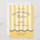 Fira med stil med denna moderna inbjudan till möhippa med feta gula ränder i kombination med kräsna blå accenter för en fräsch och trendig look. Designad för en chic sommarfest för bruden i en exotisk destination, är denna inbjudan med cool retrokänsla perfekt för en italiensk inspirerad tjejvecka fylld med Prosecco-brunch, soliga dagar och oförglömliga tjejkvällar. Inspirerad av den ikoniska charmen i Positano och Amalfikusten i Italien, blandar denna strandinspirerade inbjudan lekfulla ränder med en ren och modern layout - perfekt för att sätta tonen för en stilig helg på beachklubben eller en italiensk inspirerad fest utomlands.