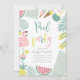 Fira din 16:e födelsedag med de här moderna sommarfödelsedagsinbjudningarna! Med tropiska löv, flamingo bassäng flyter, iskrämer, ananas, drycker, kokosnöt, vattenmelon, handdukar, flip-flops. "Bassäng Party" visas i ett sött, färgstarkt skript. Anpassa enkelt dina party-detaljer i en enkel typografi. Återvänd till handritad linjer mot pastellblå bakgrund.