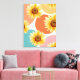 Den här färgfulla konsten på arbetsytan har abstrakt i ett färg-block stil i blått, rosa, orange, gult, med solros.En perfekt konsthandduk för konstnärliga väggar för vardagsrummet.