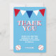 Söt baseboll födelsedag tackkort för barn att tacka sina vänner och familj. Enkelt tackkort för barn - en pojke och en flicka. Kortet har ett baseboll tema - två basebollar och röda, blå och vita vimplar. Bakgrunden är blå. Anpassa kortet med barnets namn. Du kan också ändra tackmeddelandet och skriva ditt eget om du vill.
