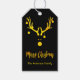 Modern, söt julklapp, guld-renar på svart presentetikett