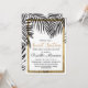 Eleganten, chic och den moderna tropiska utskrivavet guld för strand fauxen skisserar och svärtar palmträdormbunksbladlöv på vit med fauxen utskrivaven guld- sequintypografi, sötsak 16 inbjudningar för födelsedagfirandeparty. Denna klassiker och sofistikerade design är perfekta för den flott, moderiktiga och stilfulla födelsedagflickan. Personifiera med ditt egna meddelande på bekläda och en skräddarsy monogram som är initiala på baksidaen. All fototryckdesign.