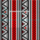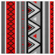 Tyg i Southwestern/för aztecen inspirerade moderna geometriska randar - den röda rika tomaten och skuggar av grått/grå färg med svartvita brytningar