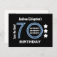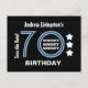 70:e födelsedag: Streckat blått och vitt nummer med stjärnor. Här är en modern födelsedag och trendig som sparar vykortsdesignen med roligt. All text är anpassade, så att du kan anpassa dig till ett namn, ändra årtalet om du behöver det och lägga till information om party. Roligt!