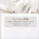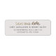 En modern elegant sparar datumreturadressetiketten med avslappnad spara vårt datumskript i guld på en lätt grått-bakgrund. Samordnar med våra moderna kort från guld löv spara datum meddelande.