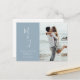 Meddela din bröllopsdag med fantastisk-fotot mot pulverblått bakgrund tillsammans med initialer i ett nyttigt, modernt kalligrafiskript. Spara idealiskt datum för bröllop, förlovningar, årsdagar och andra speciella evenemang.