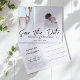 Eleganten och det moderna spara datum meddelande är prefekt för att få era bröllop-planer i rörelse. Den har en 2-fotomall på fram- och baksidan och ett handskrivet stil-skript, allt på vit bakgrund. Mycket enkelt att redigera med egen information och fotografi.