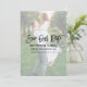 Modern Spara för penselskript Förlovningen vårt meddelande om datum med fotoöverlägg - Fotoframsida och fotobaksida