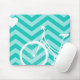 Modern sparrehjärta och cykel Mousepad. En gullig och nyckfull design som presenterar mönstrad bakgrund för turkosblått sparren med en vithjärta och en vit, cyklar överst. Mycket modernt och moderiktigt.