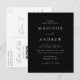 Minimalistiskt, modernt vykort för bröllopsinbjudan med information om bröllop i vita bokstäver med calligraphy-skript accents på en svartvit speglad bakgrund. Anpassa baksidan av vykortet för chicens bröllopsinbjudan med din returadress, önskat svarsdatum, bröllop webbplats och instruktioner för gäster med hjälp av de textmallar som finns. Designad att samordna med vår moderna elegance bröllop-samling.