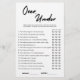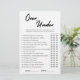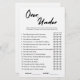Lika med alla möhippor som samlas med Modern Över- eller Under-spelkort - en lekfull twist på äkta möhippa-spel! Varje kort i rinnande sans serif-typ ställer ljusa frågor med numeriska val för gästerna att debattera - Kommer den första dansen att vara över eller under 5 minuter? Antal berusdialer som har tillverkats är över eller under 2? Driftsätt korten för att underblåsa livliga diskussioner och skratt. Anslut över gissningar som spåtts på den mångsidiga vita baksidan. Den eleganta svarta och vita designen behållor fokus på roligt samtidigt som den kompletterar alla moderna minimalistiska estetiker. Glöm inte gnistrande interaktioner och festliga minnen med denna mångsidiga aktivitet som hedrar den glödande bruden. Lämna gästerna att glatt prata om sina röster med detta optimistiska sifferförutsägelspel för att fira kärlek glädjande nystart.
