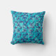 Mid-Century Modern abstrakt dekorativ kudde i fyrkantigt spiral i akvarium, koboltblått och mörk marin/indigo, accentuerad med vitt