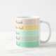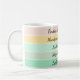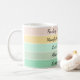 This modern St. Patrick’s Day mug features a stylish stack of color bands that flow from soft cream to light emerald, creating a fresh, uplifting gradient effect. Each stripe is paired with an inspiring, on-trend phrase, giving the mug a mix of positivity and Irish charm. The lettering is clean and graceful, adding a gentle touch of elegance. Phrases such as “Finding My Lucky Spark,” “Manifesting Magic + Luck,” and “Aligned with Luck” wrap around the mug like little affirmations for your morning routine.