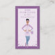 Modernt och professionellt visitkort för städservice med en vacker leende och vänlig latinamerikansk kvinna med händerna på höften och en hink med såpvatten och bubblor. Damen bär en söt lila-randig förkläde med en lavendelfärgad skjorta och jeans. Tvåtons lila ramdesign med hjärtram och gnistrande accenter. Anpassa med ditt företagsnamn, webbplats och monogram som placeras i förklädets ficka. Baksidan visar den vackra damen. Anpassa med ditt namn, jobbtitel, kontaktinformation och socialt handtag. Alla illustrationer är handritade originalillustrationer av Moodthology Papery.
