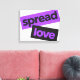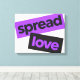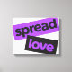 Modern, enkel, livfull och lekfull typografisk design av ett ordspråk som "Spread Kärlek" i lila och svart färg. Coola-, stads-, trendig- och fetstil i grafik