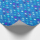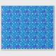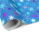 Omslagning papper i ett modernt mönster i mitten av århundradet av sju prickade stjärnor, i mjuka, celestialskuggor av akvarier, turkos och violett, på en djup cerulablå bakgrund