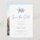 Modern Starfish Beach Dusty Blue Photo Bröllop Spara Datumet