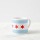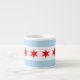 Utformning baserad på Chicagos flagga med vit, ljusblå rand och röda stjärnor. Skapa ditt eget personlig-textmeddelande på en Chicago stil souvenir. Det finns ett storlekt alternativ för jumbo och tunn hög.