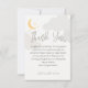 Moderna och grafiska tack-kort med månar stjärnor och moln i gult och grått med handskrift och modern typografi.